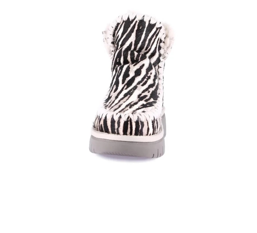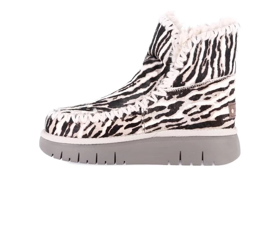 Ove super mekane čizme do članka sa praktičnom platformom savršen su izbor za hladne zimske dane. Gornji deo izrađen je od kvalitetne kože, ukrašen prepoznatljivim cik-cak šavovima koji zanimljivo prekidaju efekat životinjskog printa, donoseći dozu stila svakom outfitu.