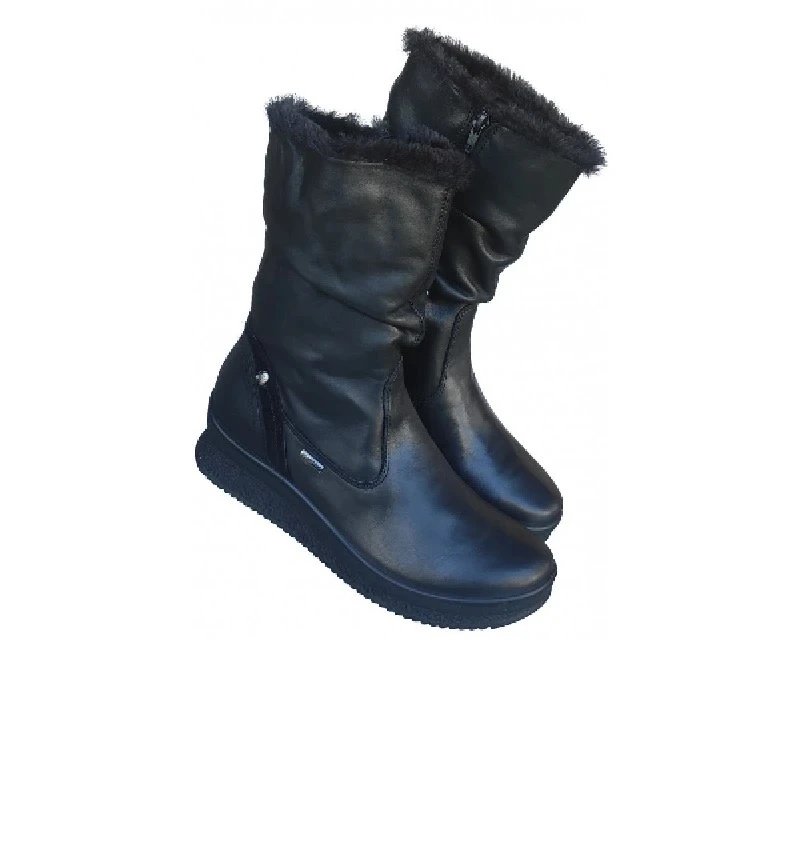 IMAC Italijanske cizme za sneg ART-856708 na anatomskom djonu visine oko 3 cm,veoma udobna i lagana.Rajsferslus sa unutrasnje strane. Rebrasti gumeni djon omogucava bezbrizniji hod po klizavom terenu.SHOCK absorber na peti.Toplo postavljene(filom).Cizma je komletno izradjena od koze,a donji deo cizme zasticen je impregniranom folijom koji se nalazi izmedju postave i lica i sprecava ulazak vode u obucu.Folija ne ometa disanje noge.Raspolozive u crnoj boji.