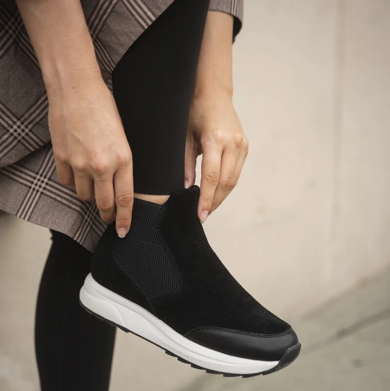 Beverli Bootie je Scholl-ova gležnjača od antilop, podesiva zahvaljujući udobnoj bočnoj elastičnoj traci. Gornji deo skočnog zgloba garantuje udobnost i stabilnost dok ga plemeniti materijali čine savršenim za svakodnevni život u gradu