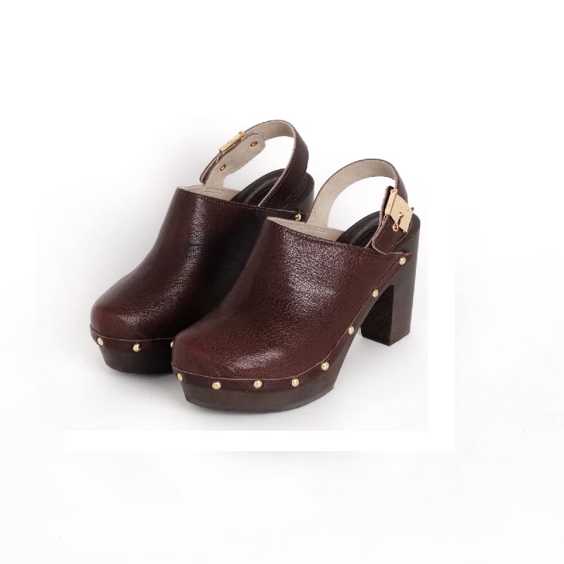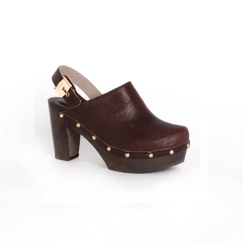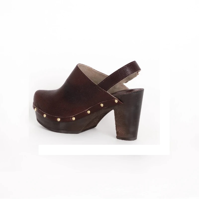 Dizajnirano i napravljeno u potpunosti u Italiji od visokokvalitetnih materijala kao što su podnožje od čistog drveta lipe i potpuno podesivi gornji deo od kože. Silueta je čista i moderna, gornji deo podseća na dizajn klompi, sa debelim platformskim đonom i visokom potpeticom koja će podići vašu figuru. Zaobljeni vrh sabo tipa daje cipeli smeli stil.