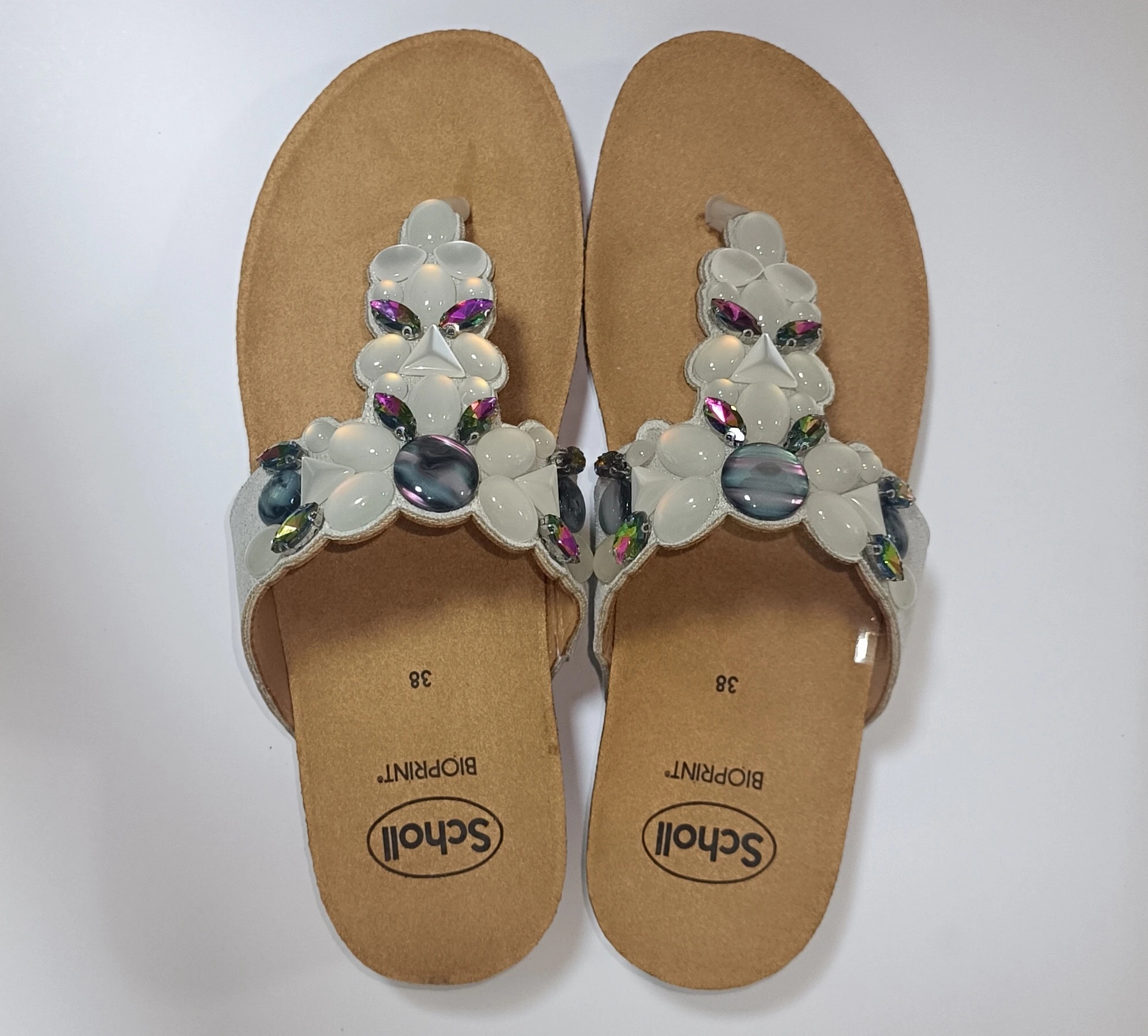 Dodajte malo sjaja svojim stopalima sa Palau obućom. Raznobojna verzija japanki i udobne papuce sa podesivim duplim kaišem završene su elegantnim kamenčićima i kristalima koji ih čine sjajnim i blistavim, savršenim za žene koje ne vole da žrtvuju udobnost radi glamura! Podnožje sa Scholl Bioprint® tehnologijom je ergonomski dizajnirano oko prirodne anatomije stopala kako bi se osigurala stabilnost, podrška i ispravan položaj stopala prilikom hodanja.
