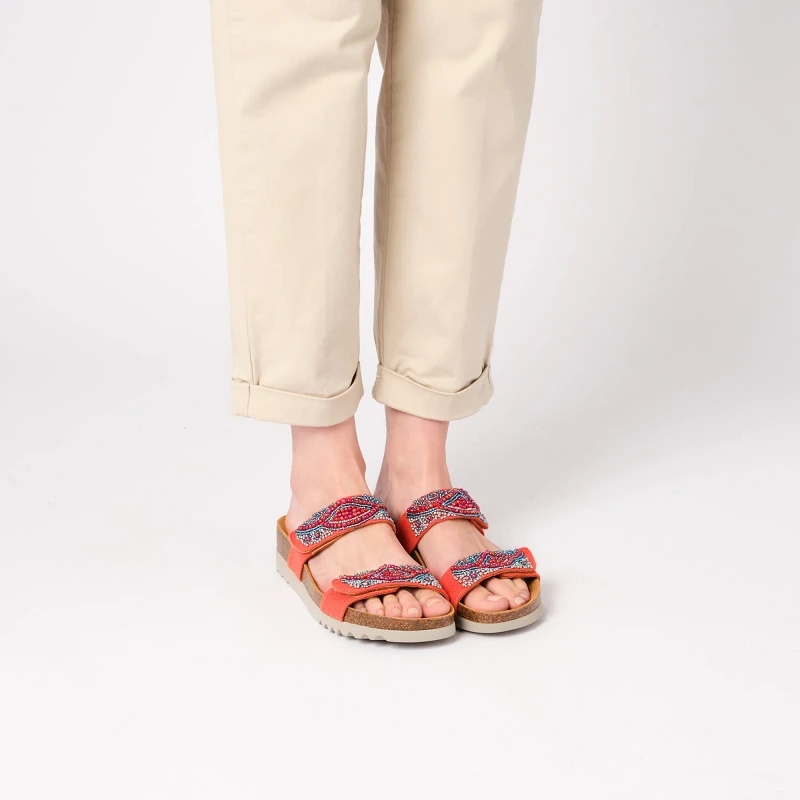 Elegantne, harizmatične Zafirah papuce moći će da zadovolje vaše dnevne potrebe. Napravljene od platna i ukrašene delikatnim perlama u više boja, savršeno spajaju funkcionalnost i estetiku. Njegov podesivi gornji deo sa duplom trakom sa čičak zatvaračem omogućava savršeno podešavanje prema obliku vašeg stopala. Štaviše, obuća je fleksibilna, lagana i opremljena Scholl Bioprint® tehnologijom sa svojom karakterističnom prirodnom plutom i gumenim uloškom dizajniranim da pomogne da vaše stopalo ostane u pravom položaju. Od danas, Scholl Bioprint® uložak ima meko jezgro koje će učiniti vaše hodanje još udobnijim zahvaljujući svojoj novoj formuli. Proizvedeno u Španiji.